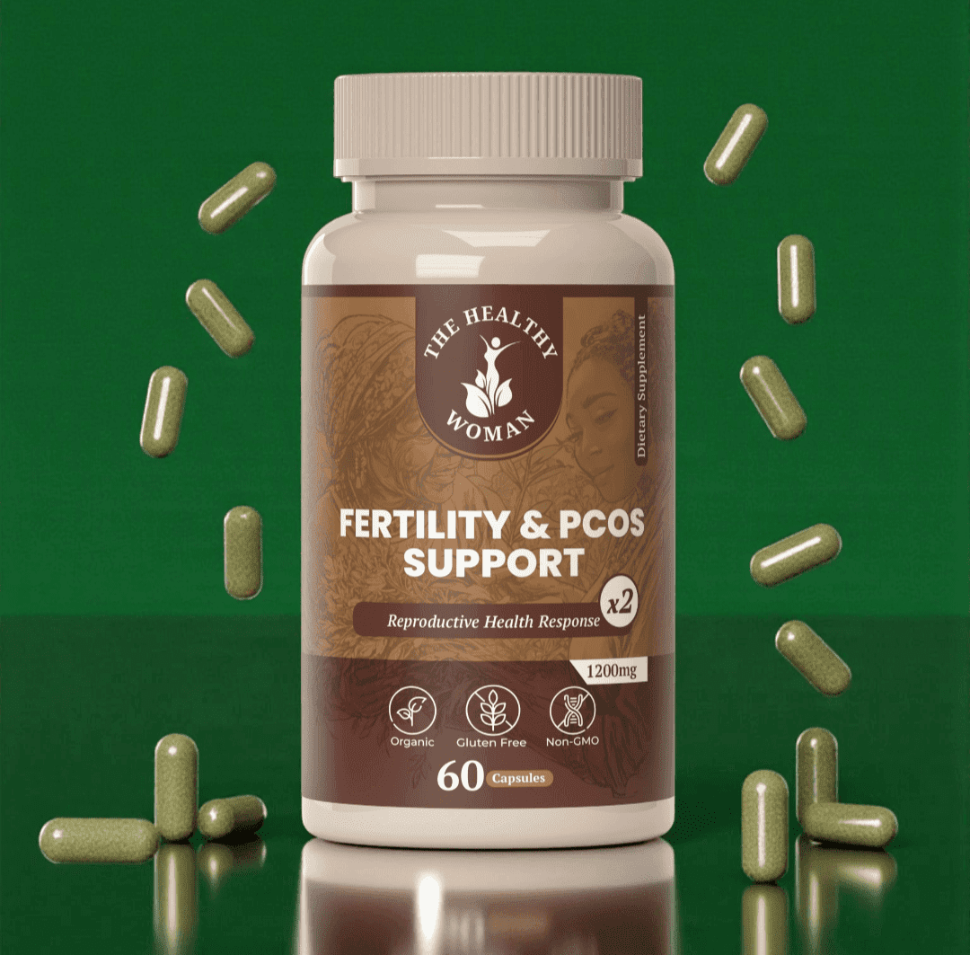 The Healthy Woman’s Fertility & PCOS Support Capsules help your body feel more balanced, steady, and ready for conception. Many women with PCOS experience irregular cycles, stubborn weight, hormonal chaos, and fertility challenges. This formula supports your system naturally so your hormones, cycle, and reproductive health feel more aligned.