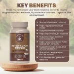 It supports natural hormonal balance, cycle regularity, ovulation rhythm, insulin response, and overall reproductive wellness.